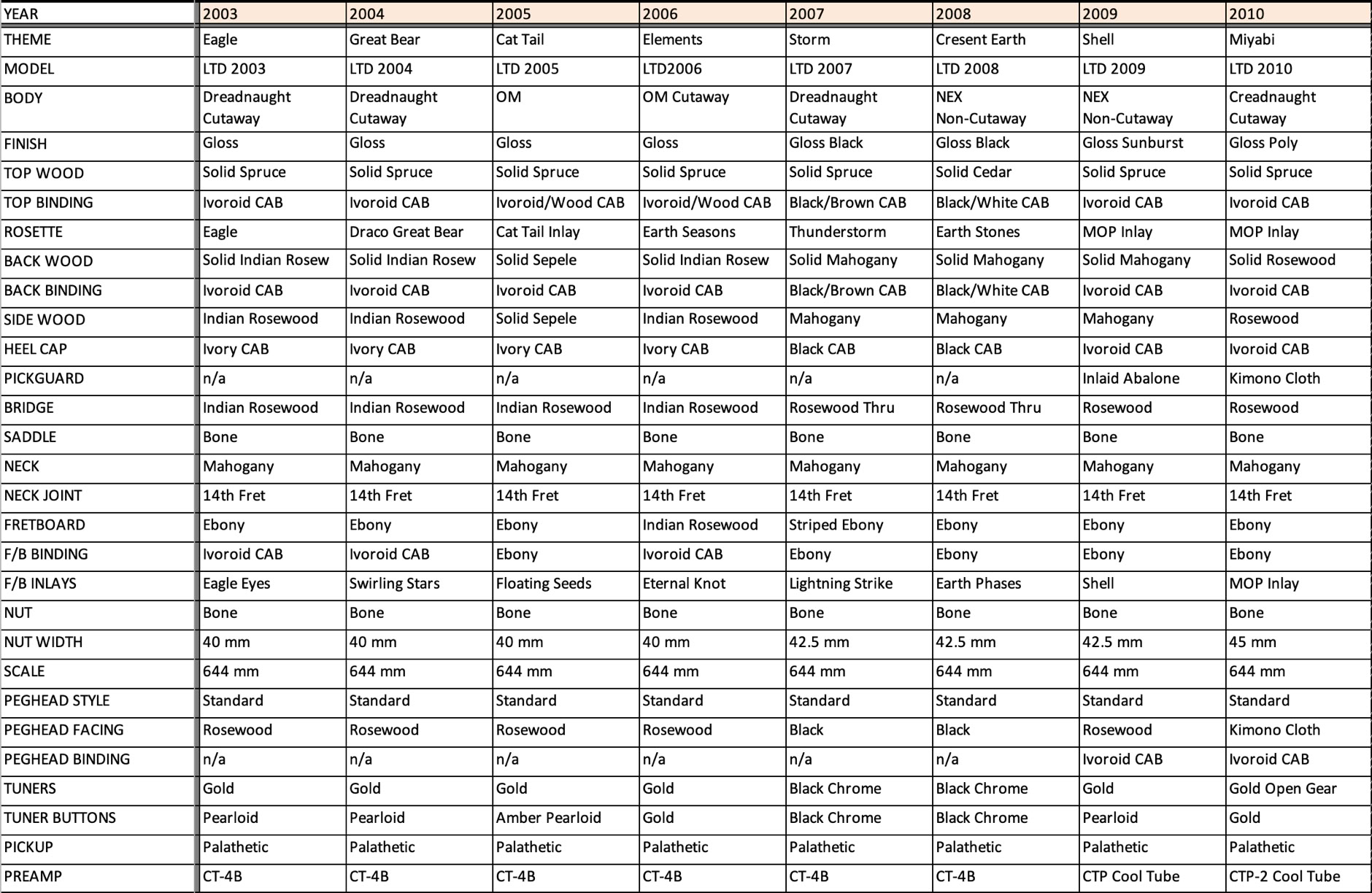 Takamine LTD Model Specifications