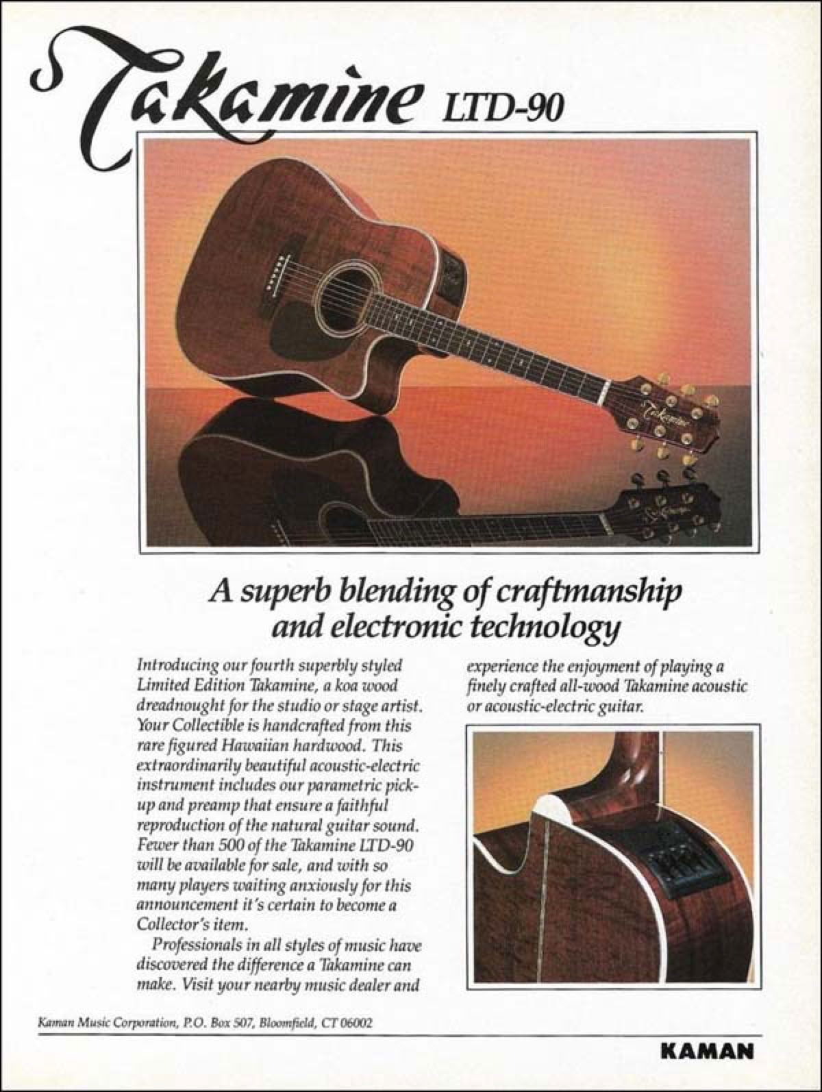 Each year beginning with their 25th Anniversary in 1987, Takamine has produced an annual Limited Edition guitar called the LTD. Each model exhibits the cutting edge of artistic expression, expert craftsmanship and sonic excellence. Produced in very limited quantities, the LTD guitars are highly sought after by players and collectors alike.