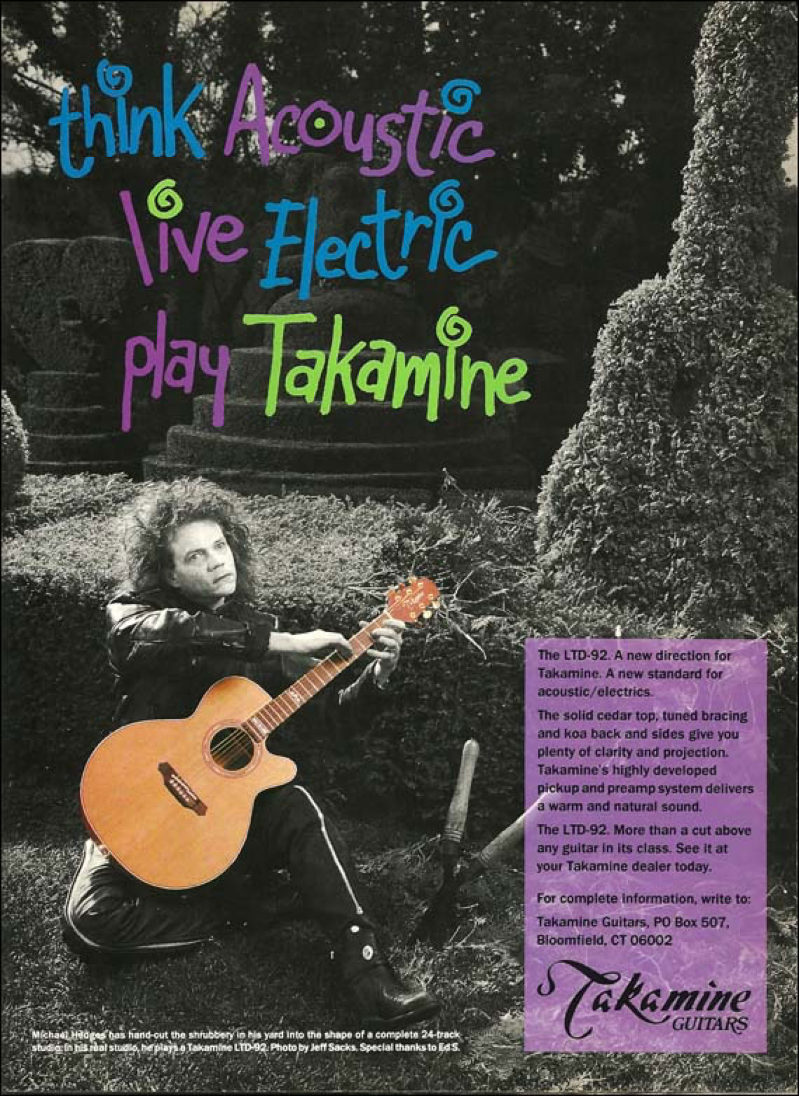 Shown below is the LTD 1992, an NEX cutaway with Cedar top and Koa back and sides. Advert for the LTD 1992 featured Michael Hedges.