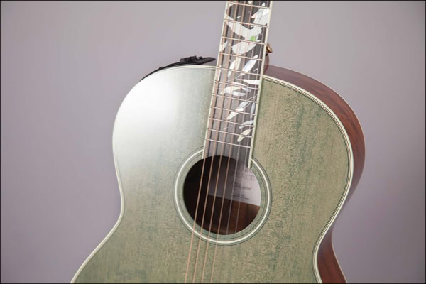 Shown below is the LTD 2020, celebrating “Peace” for today and into the future. This guitar features an intricate Dove Of Peace fretboard inlay and a Foliage Green brushed motif top made of solid spruce.