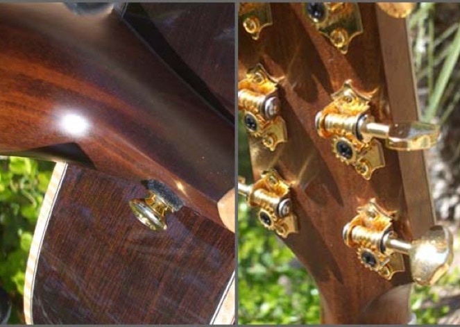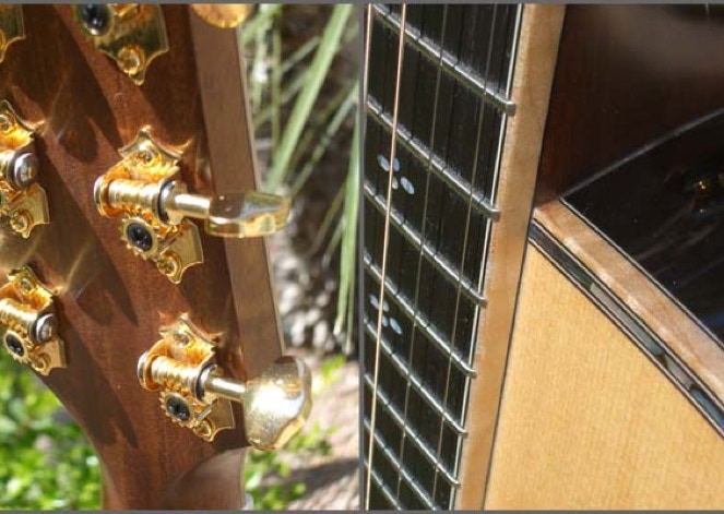 The heart of any guitar is the soundboard. As one of the worlds largest manufacturers of acoustic guitars, Takamine has an extensive inventory of select tonewoods. From its very conception the EF-75 was targeted to be a very special and elite instrument, hence only the finest AAA grade spruce tops were chosen. The 15+ year old stock of rare Brazilian Rosewood was perfectly sized for OM body back and sides. Joined together with figured maple binding and the soundboard trimmed in detailed abalone. Bracing is a scalloped X design. The neck is choice mahogany, supporting an ebony fretboard bound in maple with mother Of pearl and abalone inlays. The beautiful headstock is also faced in Brazilian rosewood and trimmed in figured maple with a Takamine logo inlay of Koa. Tuning is handled by vintage style Gotoh open gear tuners.