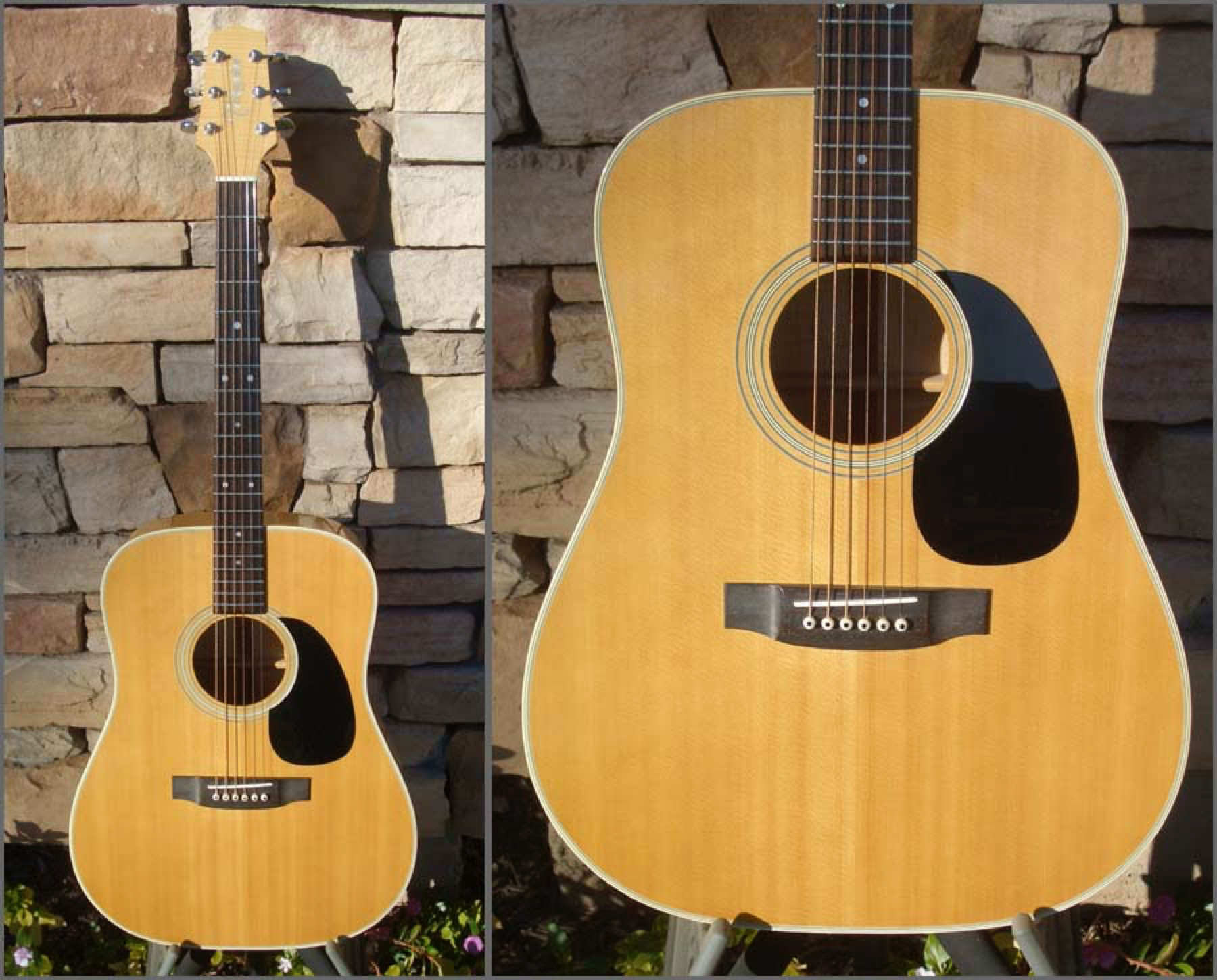 • Non-cutaway Dreadnaught with Flamed Maple back/sides