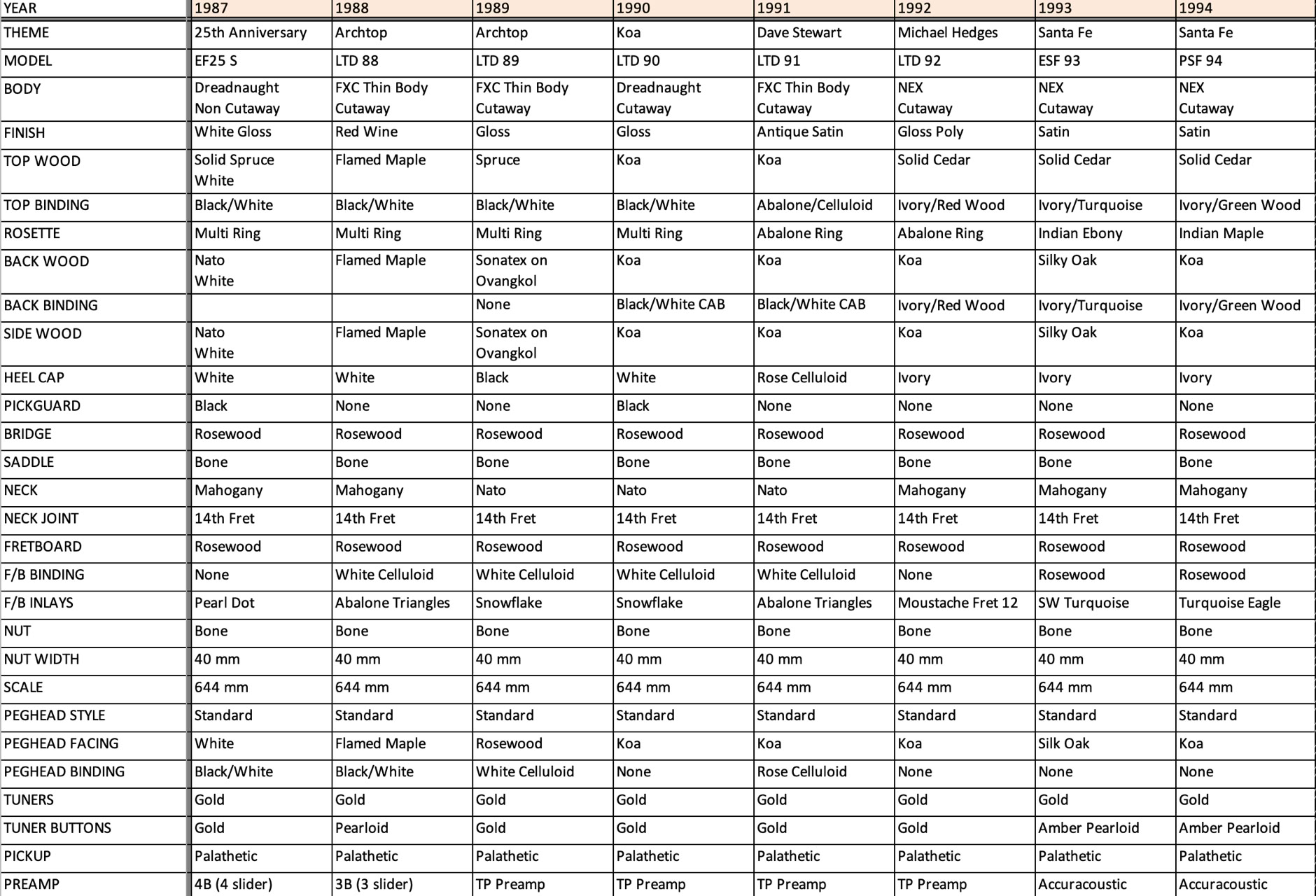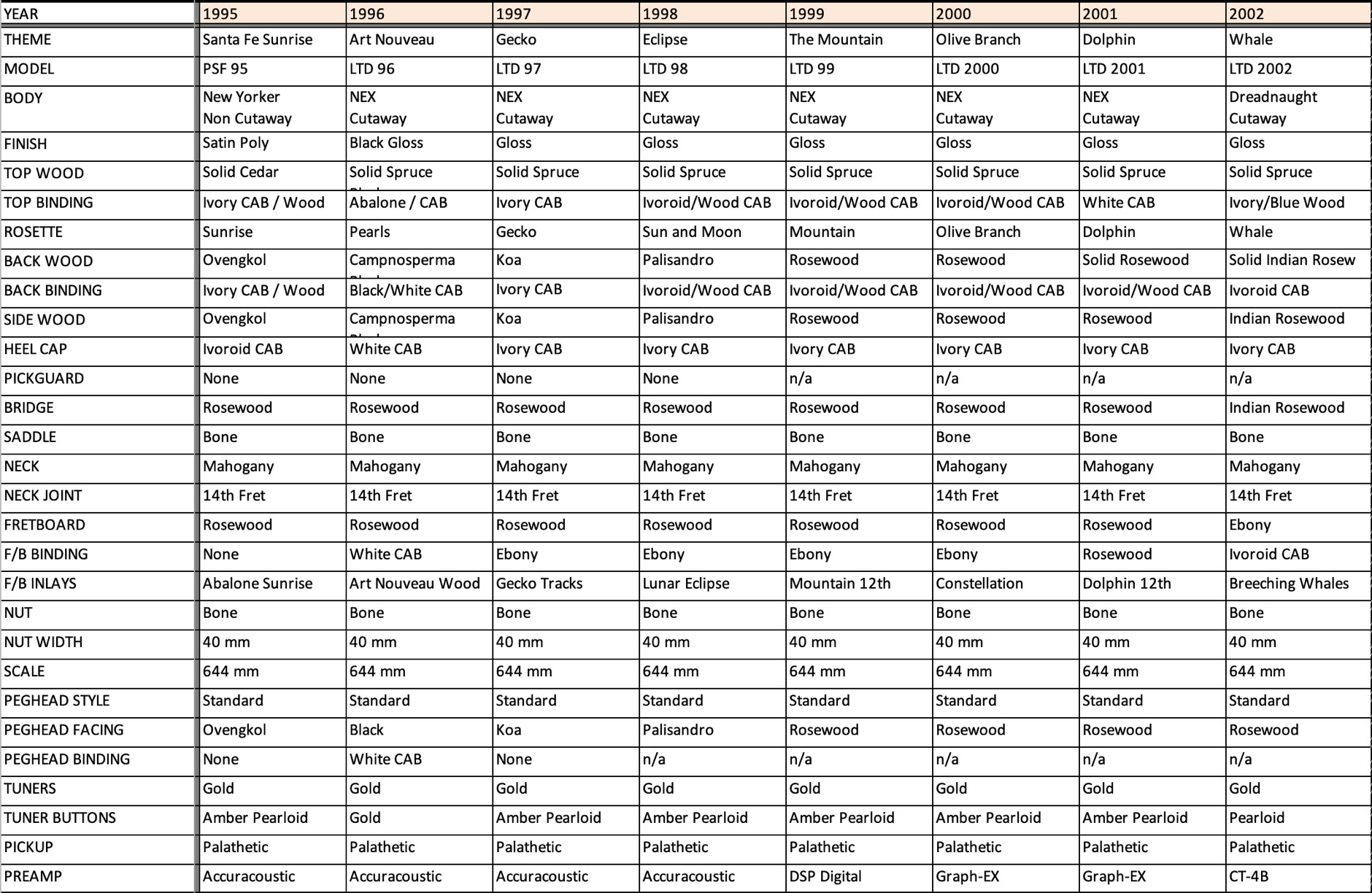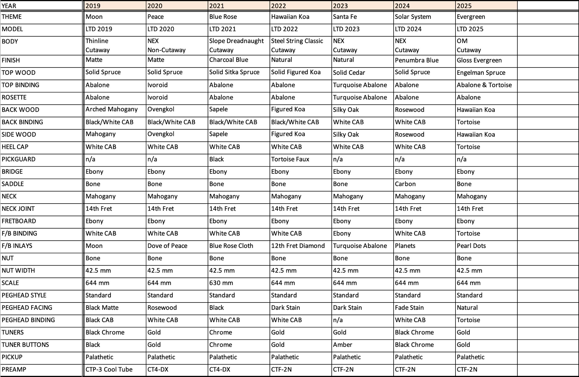 Takamine LTD Model Specifications